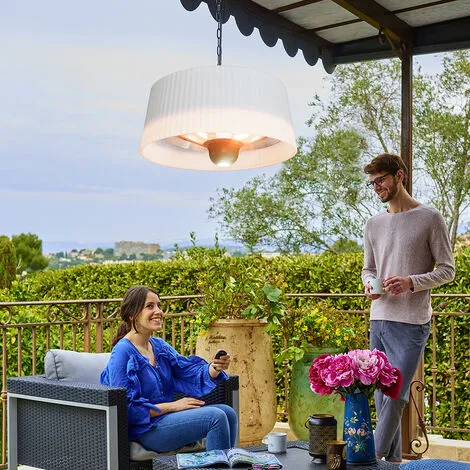 Le Parasol chauffant électrique Sirmione est efficace ! Il vous accompagnera durant vos moments du quotidien en extérieur, jusqu’à tard la nuit ! Grâce à son design moderne et tendance, il trouvera rapidement sa place dans votre extérieur. Équipé d’une chaîne de fixation, il s’installe facilement au plafond. Sa chaleur douce vous procura un confort sans égal et avec du style.