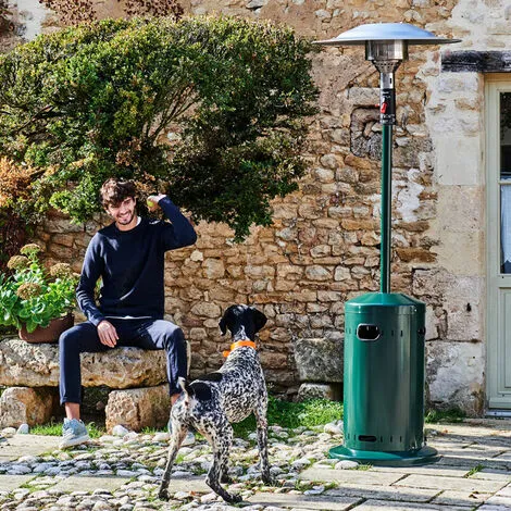 Solide et sécuritaire : sa structure en acier peint vert vous assure une utilisation en extérieur quotidienne. Ce parasol chauffant est très sécurisant. Il est doté d’un thermocouple et d’un système anti-basculement pour une sécurité maximale ! Son coupe-circuit arrête automatiquement le brûleur en cas de chute, de basculement ou d’arrêt de la flamme. Sa résistance au vent et à l’eau, font de lui un appareil fiable et robuste.